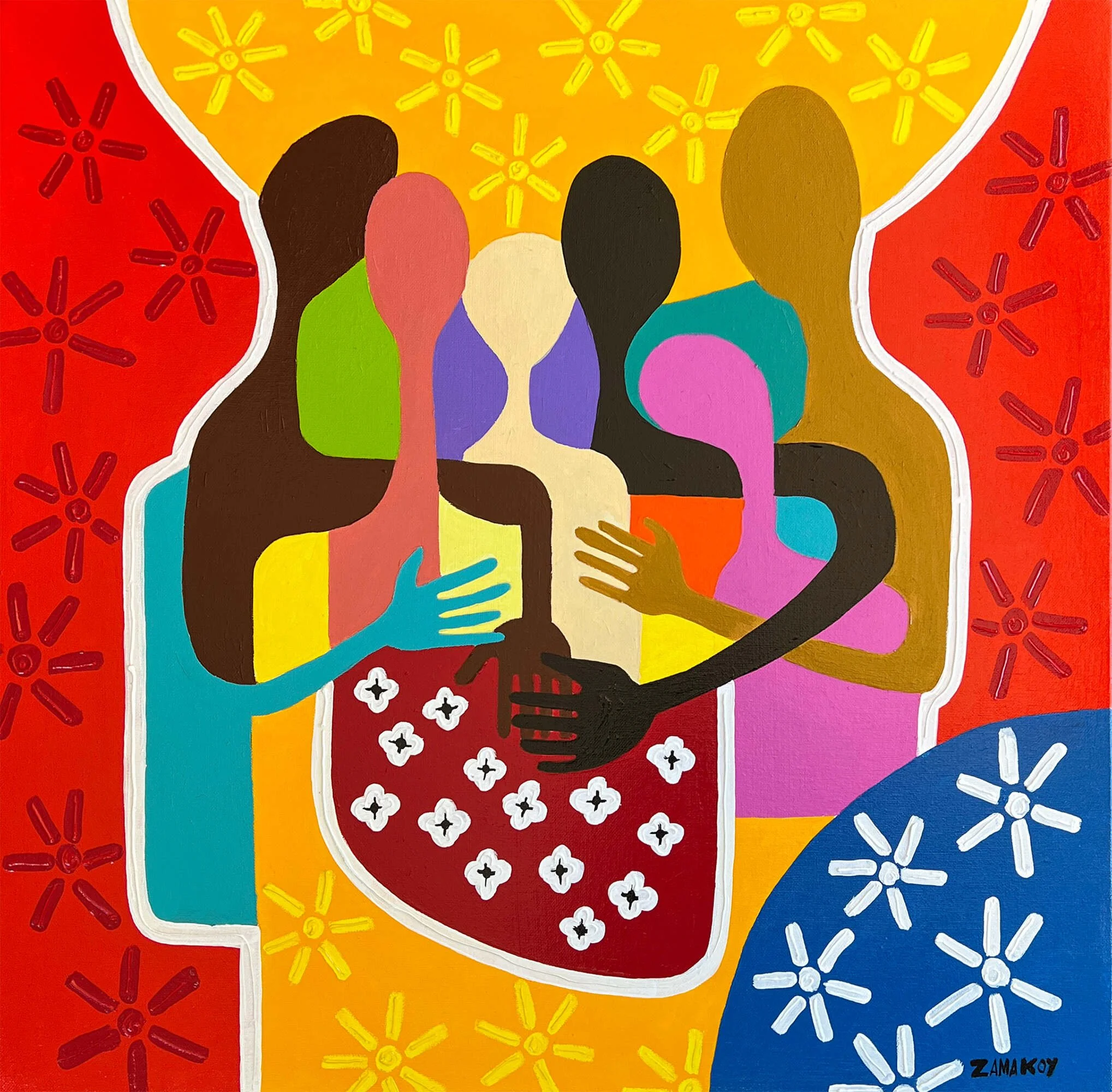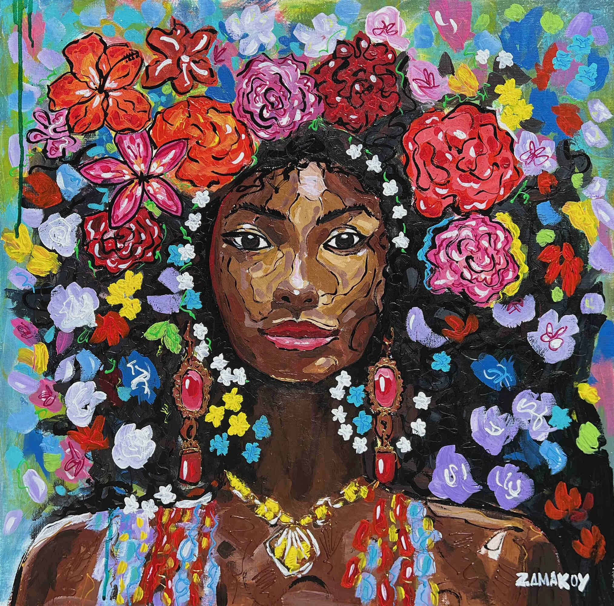 Based on Reunion Island in the southern hemisphere, ZAMAKOY's compositions convey the volcanic ardor and tropical colors that surround him and fuel his palette. Her brushes leave rough but precise traces on the canvas, producing an almost primitive harmony, going to the essential and giving life to powerful looks or feelings.