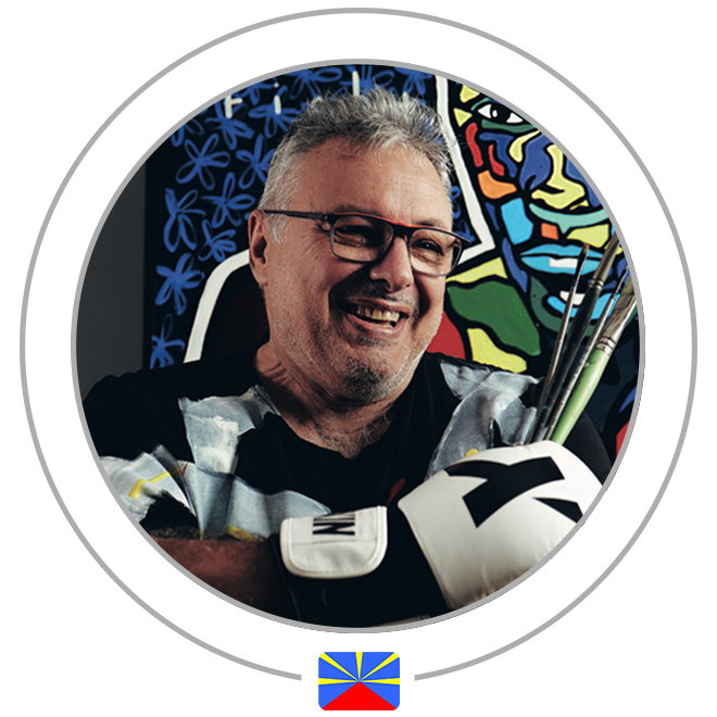 Naturally, Reunion Island remains a major source of influence. However, her artistic universe extends far beyond the island's limits, as the artist explores other horizons according to her inspiration, her travels and her imagination. His canvases are often embellished with painted or scribbled texts, breathing life and fantasy into all his works. -