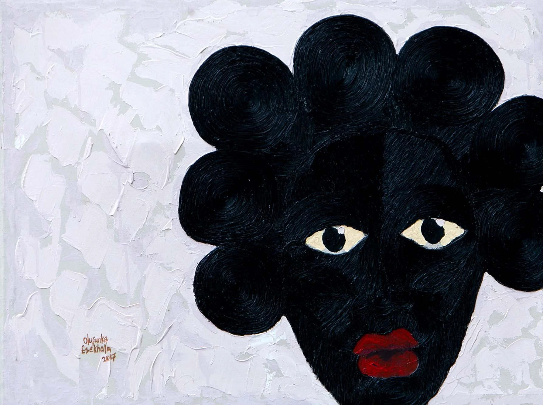 Turban and Hair | Acrylic, Rubber Thread & Mixed Media on Canvas | 92 x 107 cm | 1200 USD
