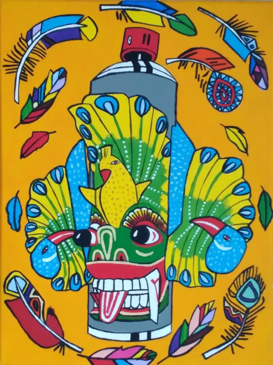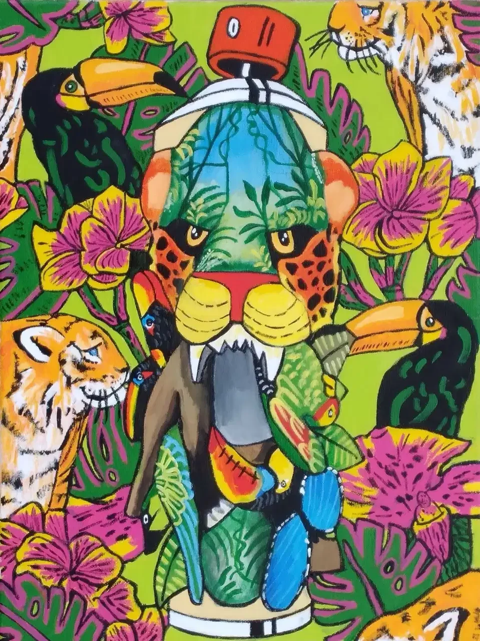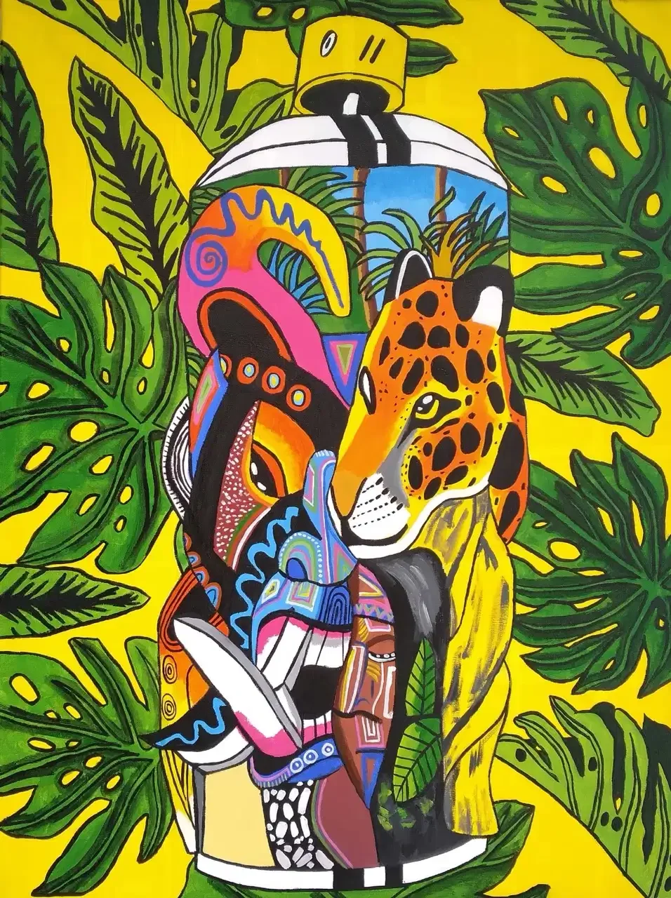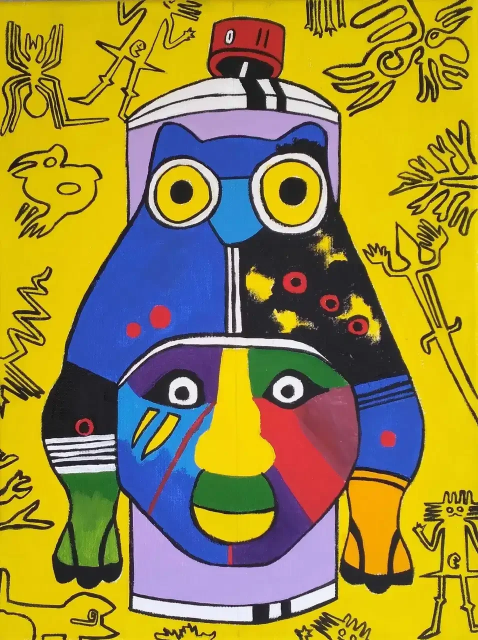 Known for her vibrant style, Angela draws inspiration from street art, German Expressionism, and tribal symbolism. Her work captures the raw energy of urban landscapes, blending narrative and color in a way that speaks to global unity.