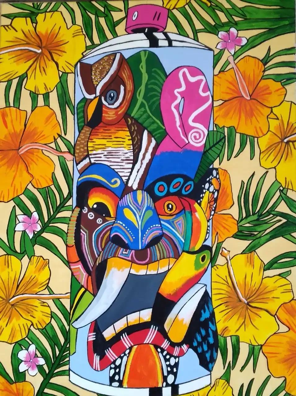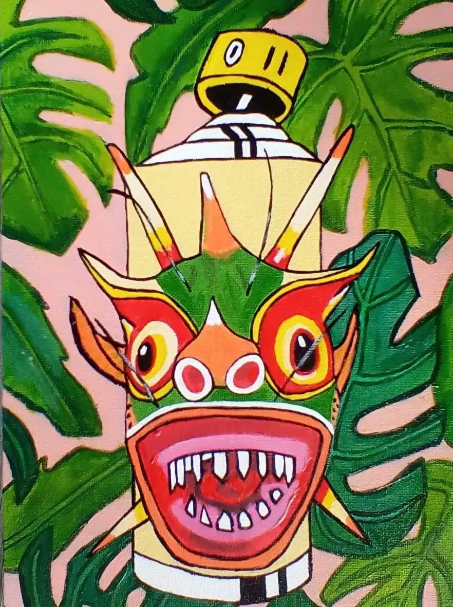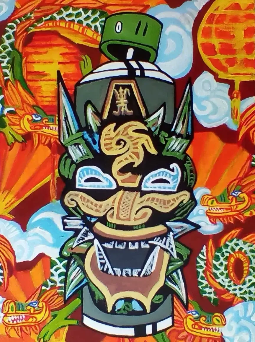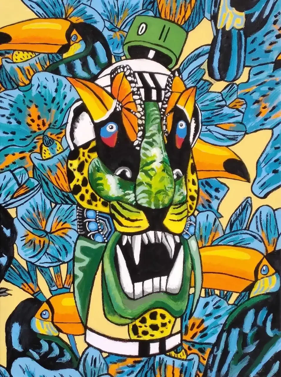 Known for her vibrant style, Angela draws inspiration from street art, German Expressionism, and tribal symbolism. Her work captures the raw energy of urban landscapes, blending narrative and color in a way that speaks to global unity.