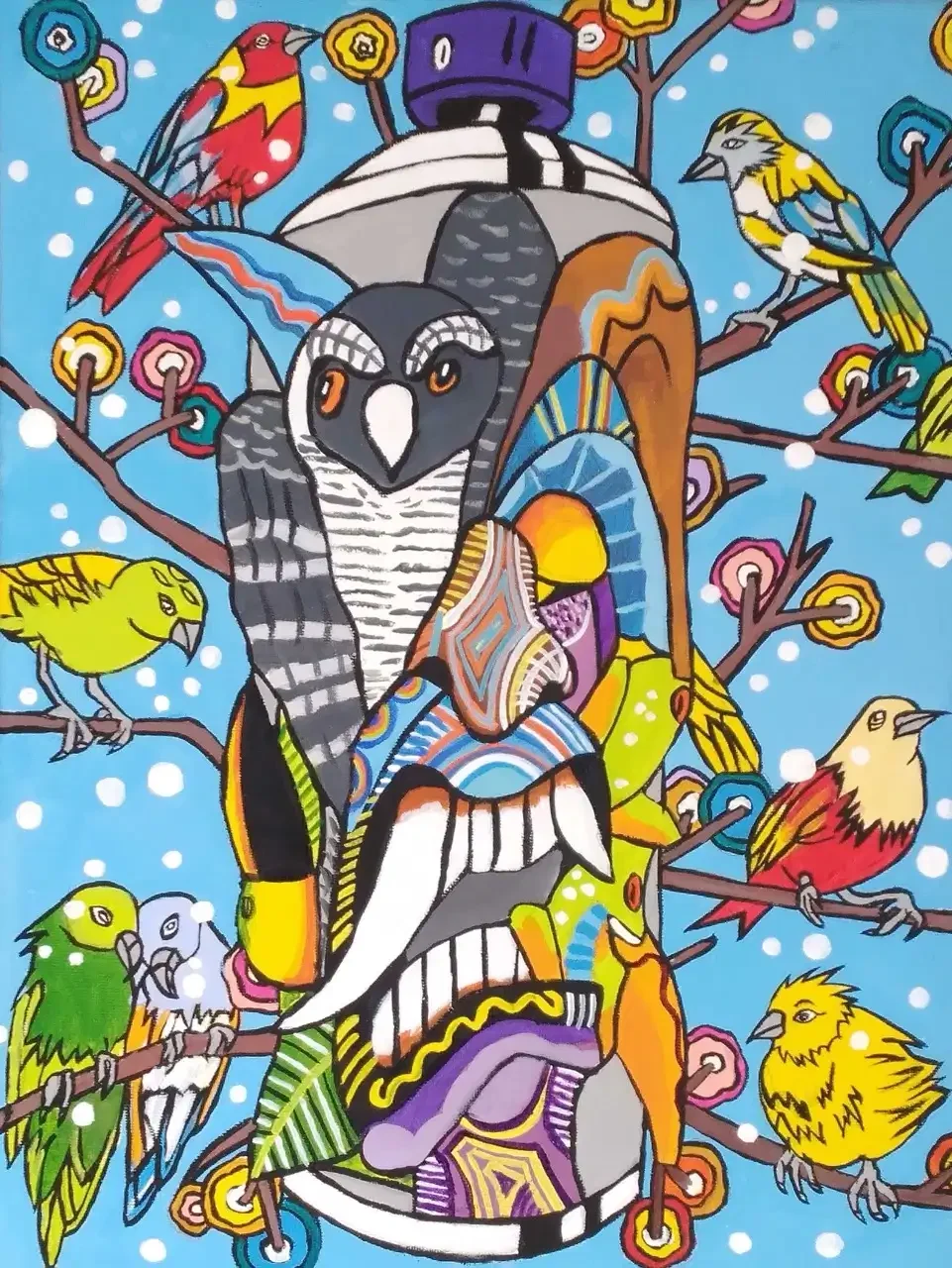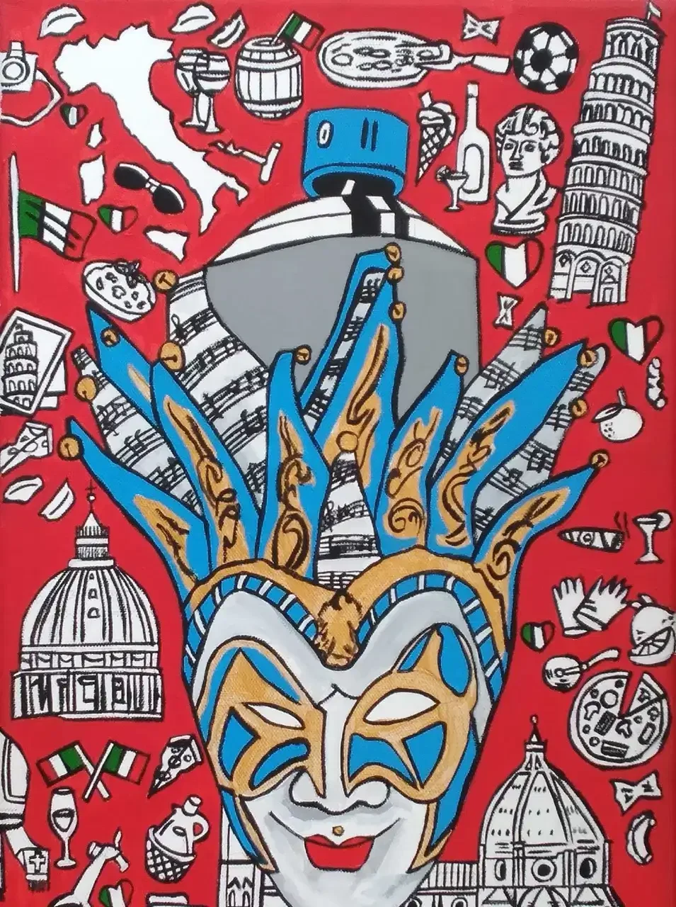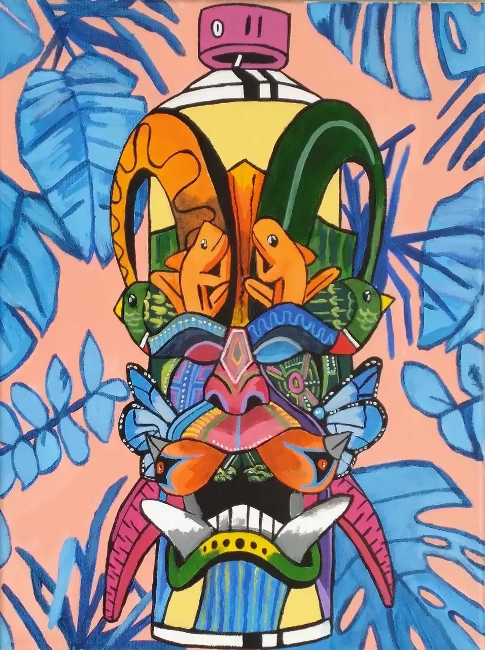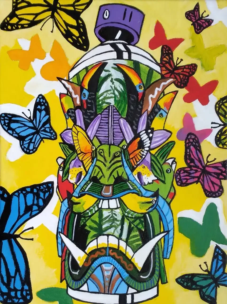 Known for her vibrant style, Angela draws inspiration from street art, German Expressionism, and tribal symbolism. Her work captures the raw energy of urban landscapes, blending narrative and color in a way that speaks to global unity.